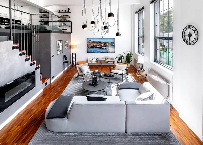 Spacious The Factory Loft Prague Apartment is nestled in the Whitehall district, a 5-minute walk from the restaurant Oaza. Wi-Fi and complimentary private parking are among the essentials at guests' disposal.